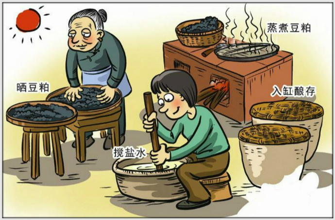 經(jīng)蒸煮、制曲、高鹽稀態(tài)發(fā)酵后