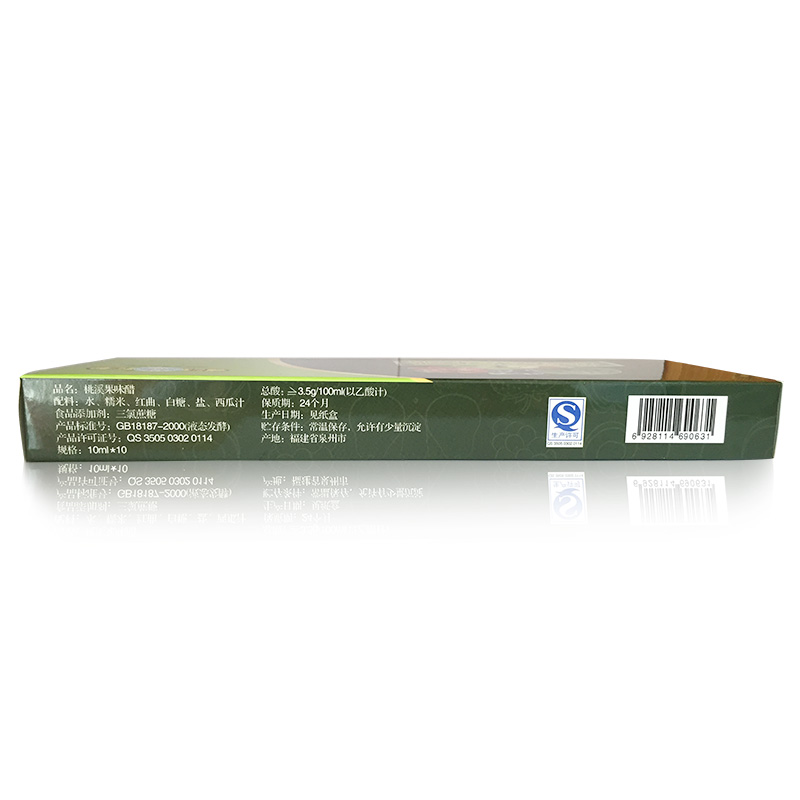 選用陳釀多年的永春老醋(液態(tài)發(fā)酵,純糧釀造),輔以優(yōu)質(zhì)的濃縮西瓜果汁佳釀?wù){(diào)制而成。酸度3.5,其口感酸甜,果香濃郁,清爽可口,美味好喝,而且無(wú)需防腐劑??芍苯语嬘没蚣铀?、蜂蜜稀釋飲用,也可用于涼拌沙拉、佐餐調(diào)味、調(diào)制果醋飲料等。