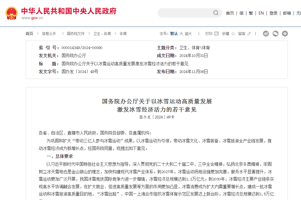 國辦印發(fā)通知:加大金融支持力度,培育一批冰雪領域專精特新中小企業(yè)