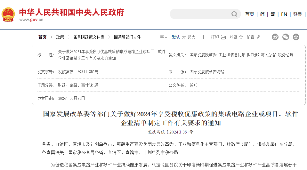為促進我國集成電路產(chǎn)業(yè)和軟件產(chǎn)業(yè)持續(xù)健康發(fā)展,國家發(fā)展改革委、工業(yè)和信息化部等五部門日前印發(fā)《關(guān)于做好2024年享受稅收優(yōu)惠政策的集成電路企業(yè)或項目、軟件企業(yè)清單制定工作有關(guān)要求的通知》(以下稱《通知》),提出2024年享受稅收優(yōu)惠政策的集成電路企業(yè)或項目、軟件企業(yè)清單制定工作,基本延用2023年清單制定程序、享受稅收優(yōu)惠政策的企業(yè)條件和項目標準。